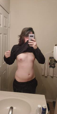 21 years old bar blonde erotic exhibitionism public shaking tits gif