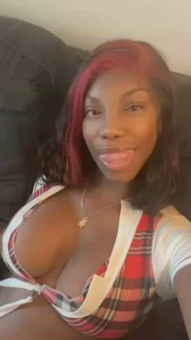 Big Tits Ebony Petite Teasing Topless Uniform Vertical gif