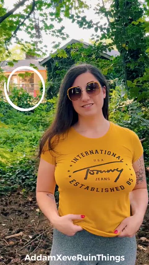 big tits brunette flashing hottie thot tits whore gif