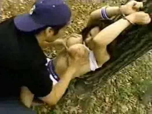 Anna Ohura handcuffed to tree tits sucked