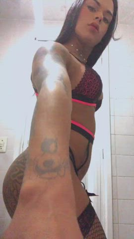 ass babe babecock brazilian brunette lingerie stockings trans gif