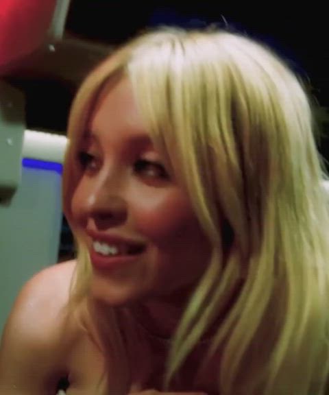 blonde cleavage sydney sweeney gif