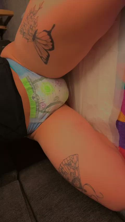 view porn gifCouldn't contain the naughty thoughts running through my little head. It's just what happens when my diaper is full to the max. Lots of rubbing, buzzing, fingering, cumming... [Full video linked in comments]