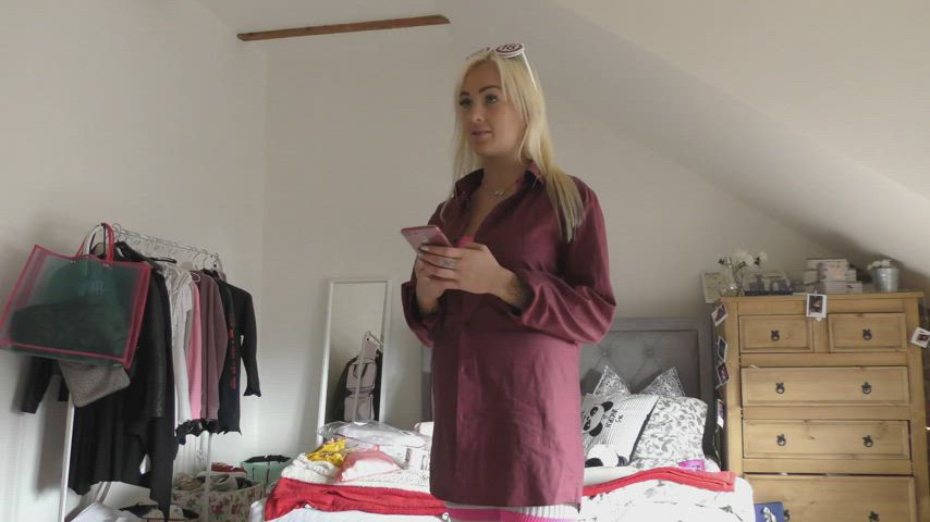 view porn gifSelf Wedgie pushing the limits in a try on haul to show and tease of Petite Blonde´s Tight Pussy