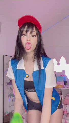 ahegao cute eye contact handjob jerk off petite pretty small tits teen gif