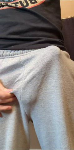 the only way to wear grey sweatpants is freeballing it
